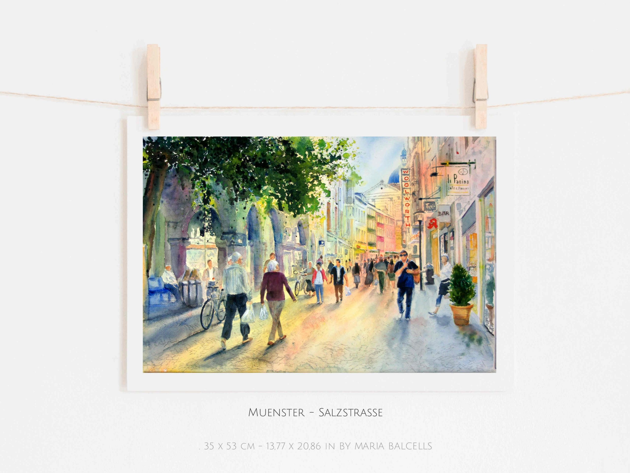 MÜNSTER SALZSTRASSE- watercolour street painting by Maria Balcells